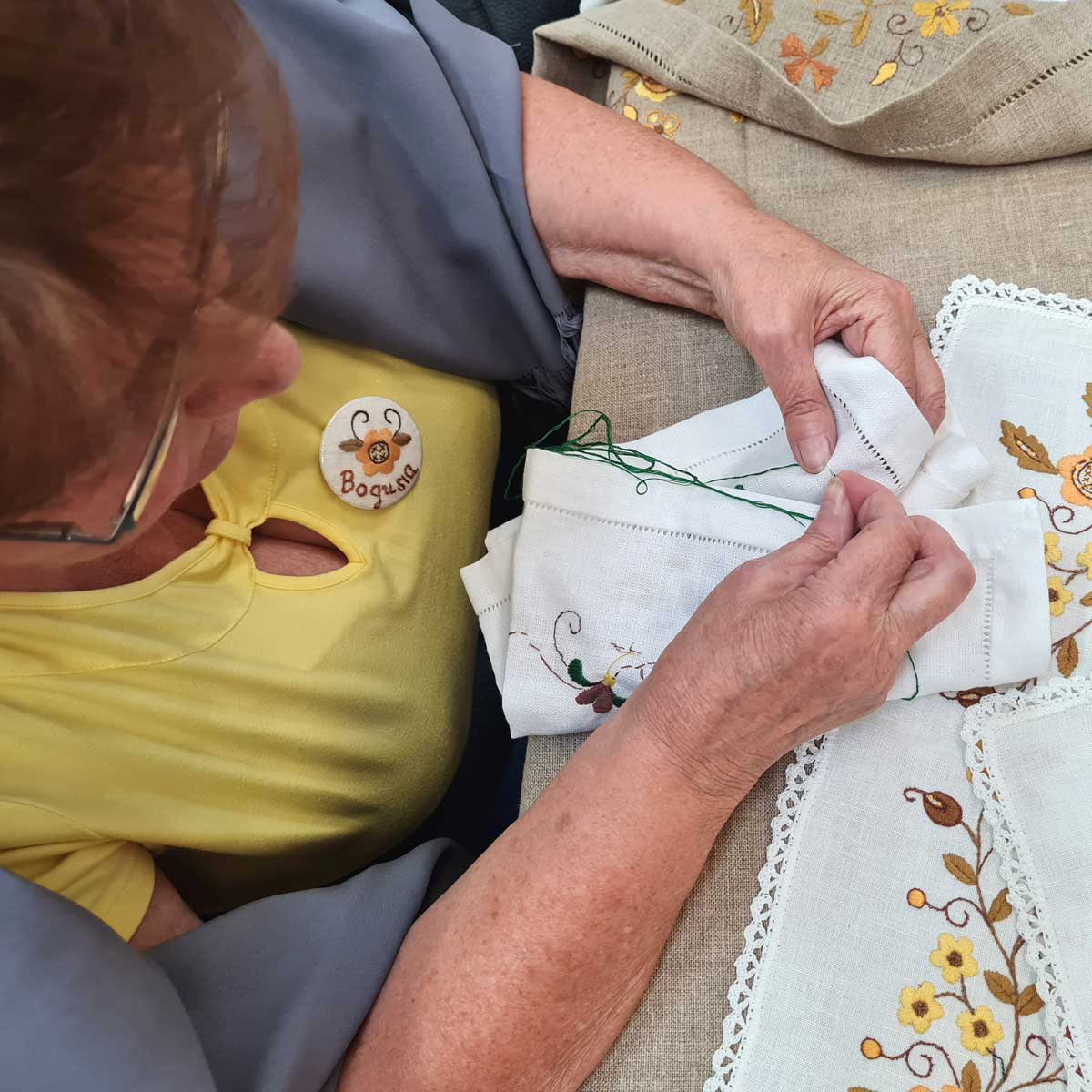 Kolejne spotkanie w Klub Haftu Miłośników Złotych i Bursztynowych Barw tym razem pod hasłem Haft Kaszubski Szkoła Borowiacka - spotkanie z Panią Bogumiłą Błażejewską. Pani Bogumiła pierwszego haftu nauczyła się od mamy a potem zwoje umiejętności zdobywała w czasie różnych kursów i wyszywając dla Cepelii. Była uczestniczką wielu wystawach i konkursach, gdzie zdobywała wiele nagród i wyróżnień.