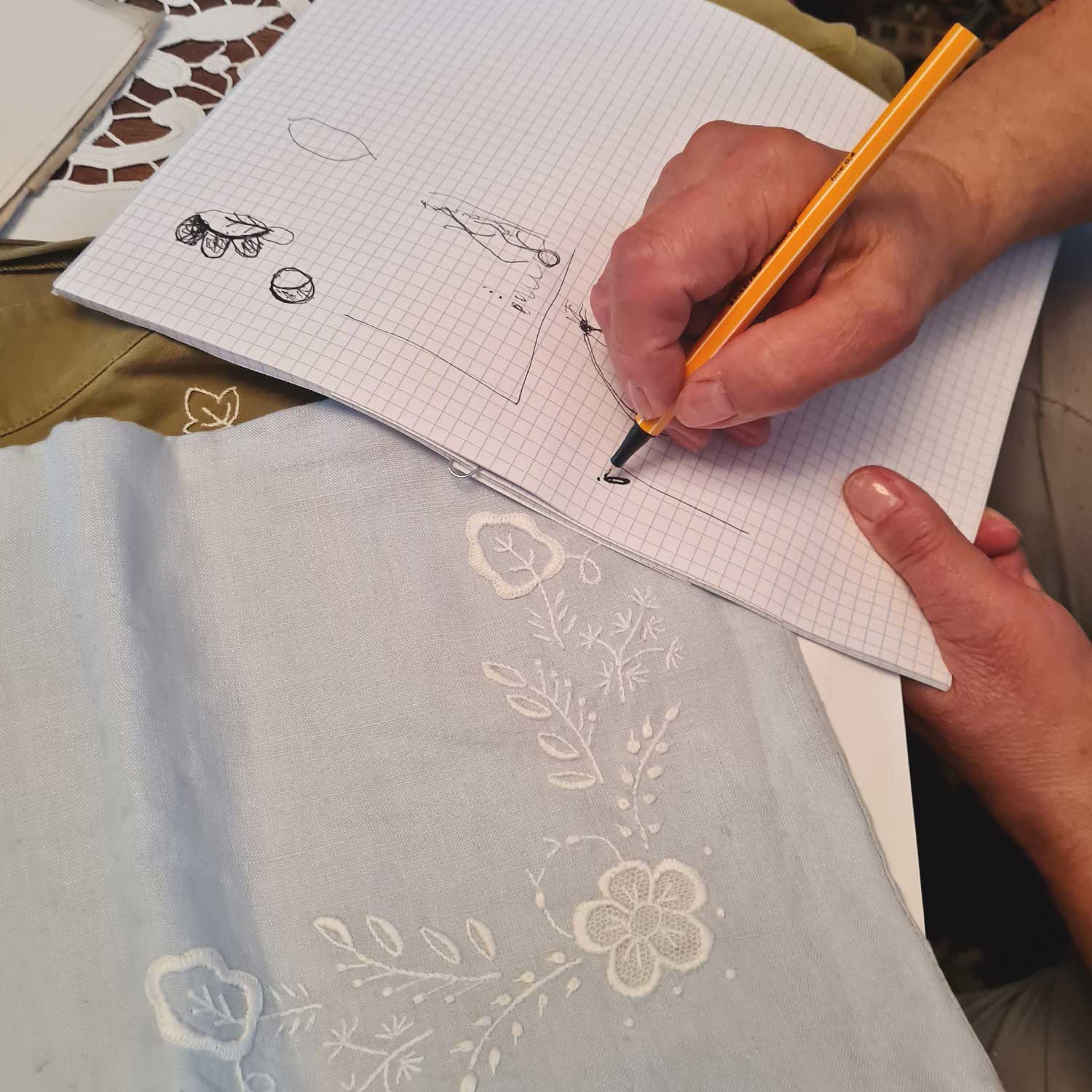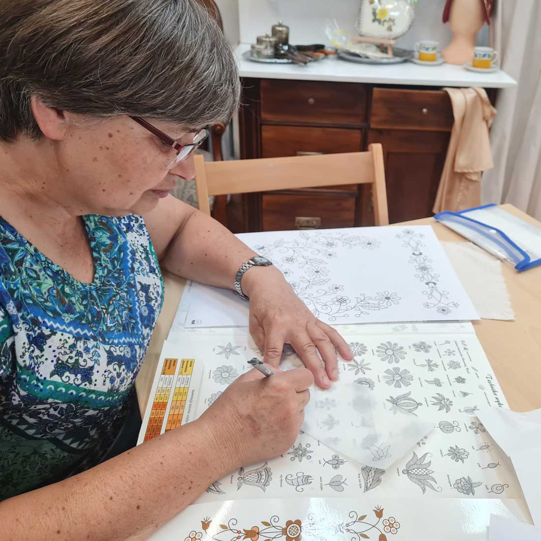 Miałam okazję podpatrzeć jak Pani Bogumiła projektuje wzór Borowiacki, co było dla mnie wyjątkowo cennym doświadczeniem, podziwiałam przyniesione prace. Dziękuje Pani Bogumiło za wprowadzenie w tajniki haftu Borowiackiego.