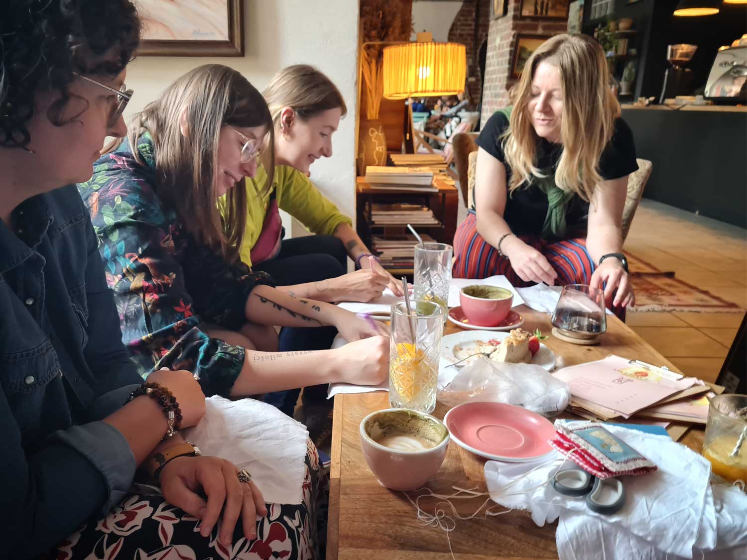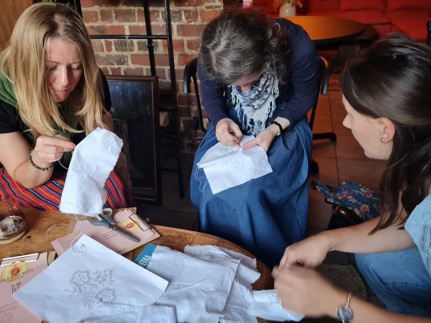 Spotkanie w kameralnym gronie miłośniczek igły i nitki a w tle #haftpałucki Dziewczyny z Bydgoskiego Klubu Nitkomaniaczek "testują" zaprojektowany przeze mnie wzór przenosząc go na swoje ubrania ❤ Być może uda się skończyć haft na czas i zobaczymy JE w czasie wernisażu Etno Szafa Współczesnej Bydgoszczanki - WERNISAŻ Wystawy już w gotowych kreacjach ❤ Dziękuje Pani Honorato, Aniu, Wioleto, Ireno i Joanno za spotkanie!