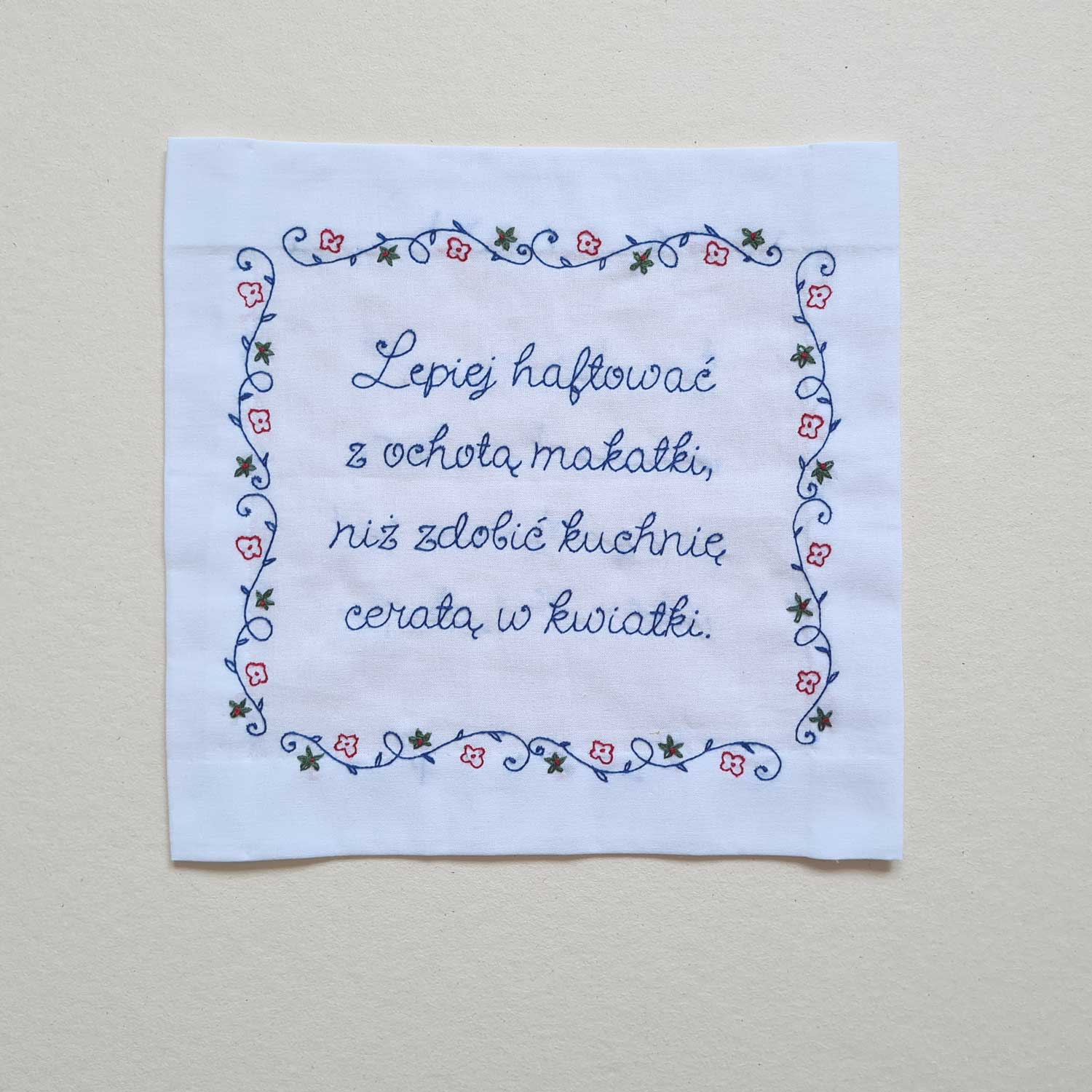 "Lepiej haftować z ochotą makatki, niż zdobić kuchnię ceratą w kwiatki"".