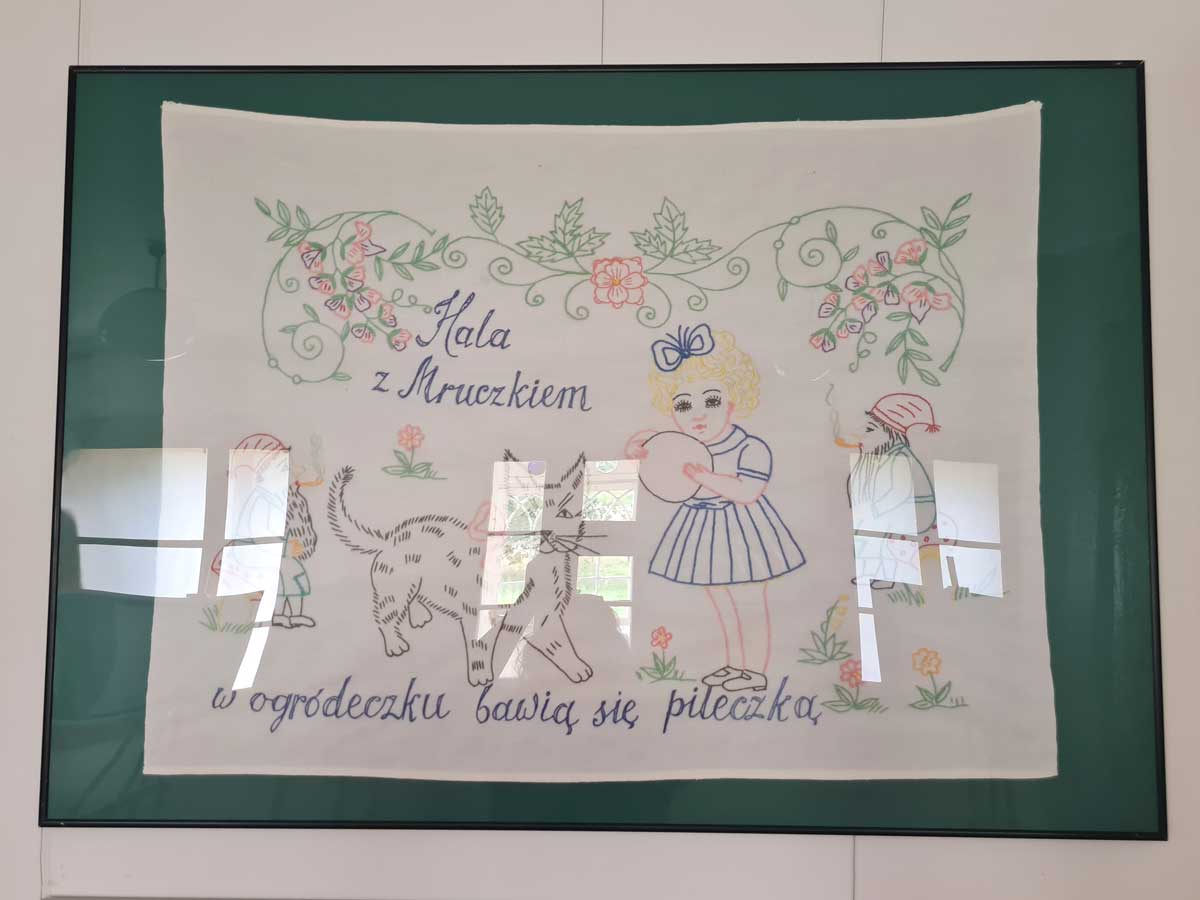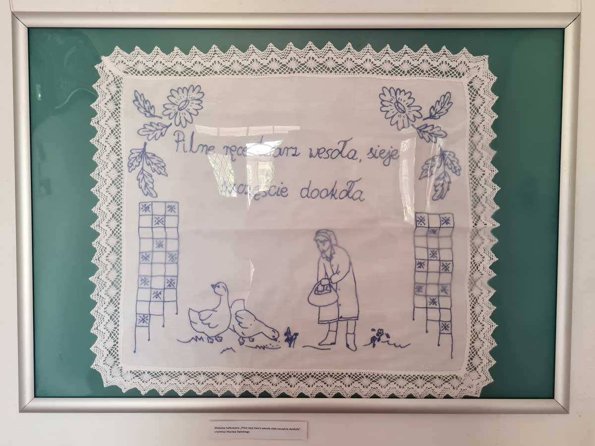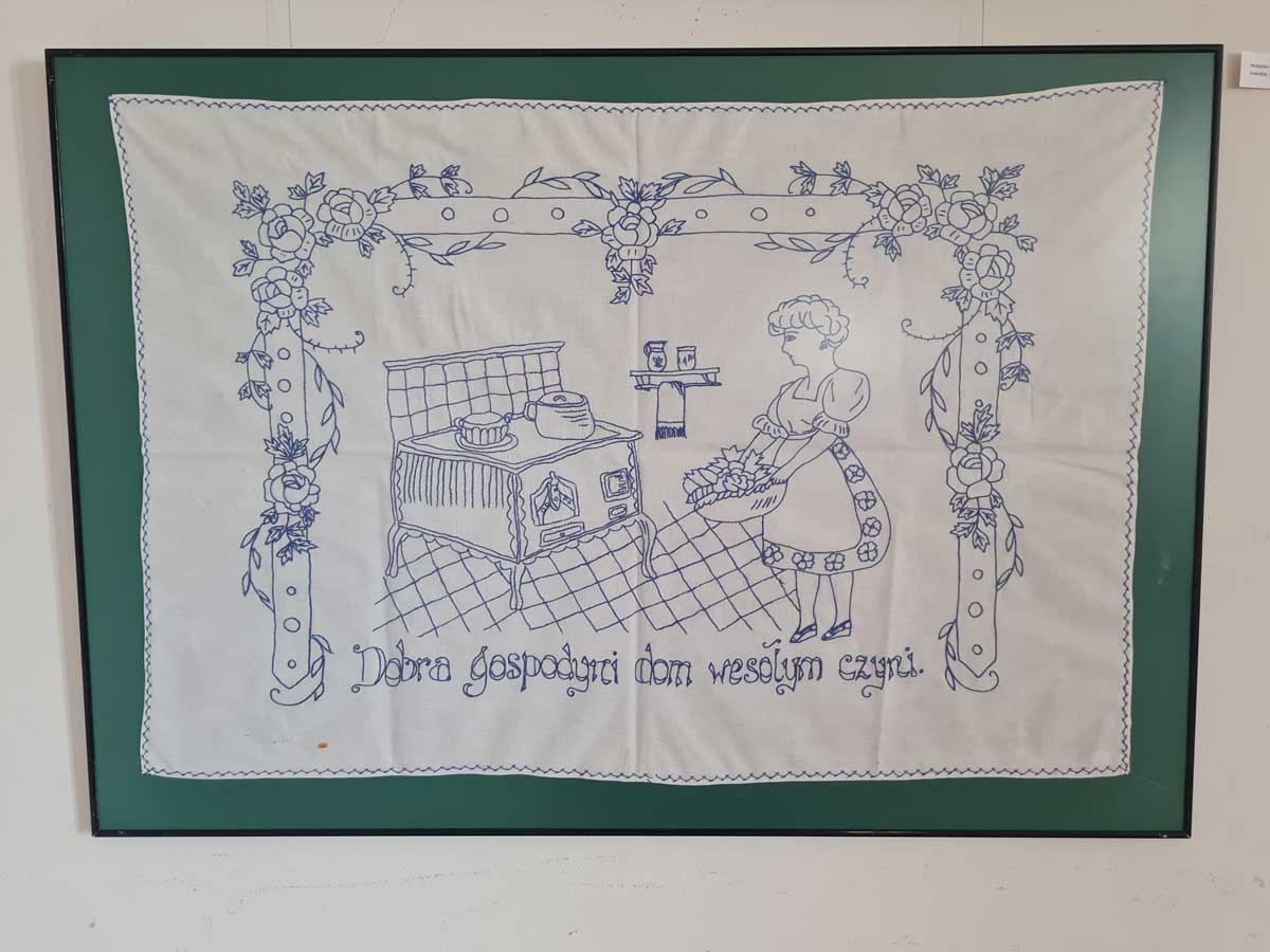 Gdzie kompot z porzeczek i domowe ciasto ... wystawa makatek kuchennych w Skansenie w Maurzycach. Rok 2024.