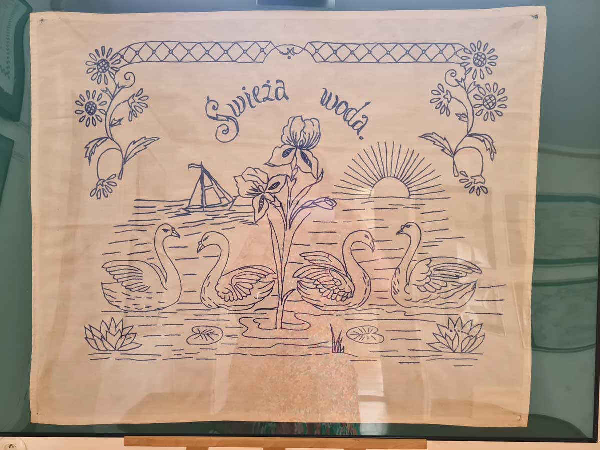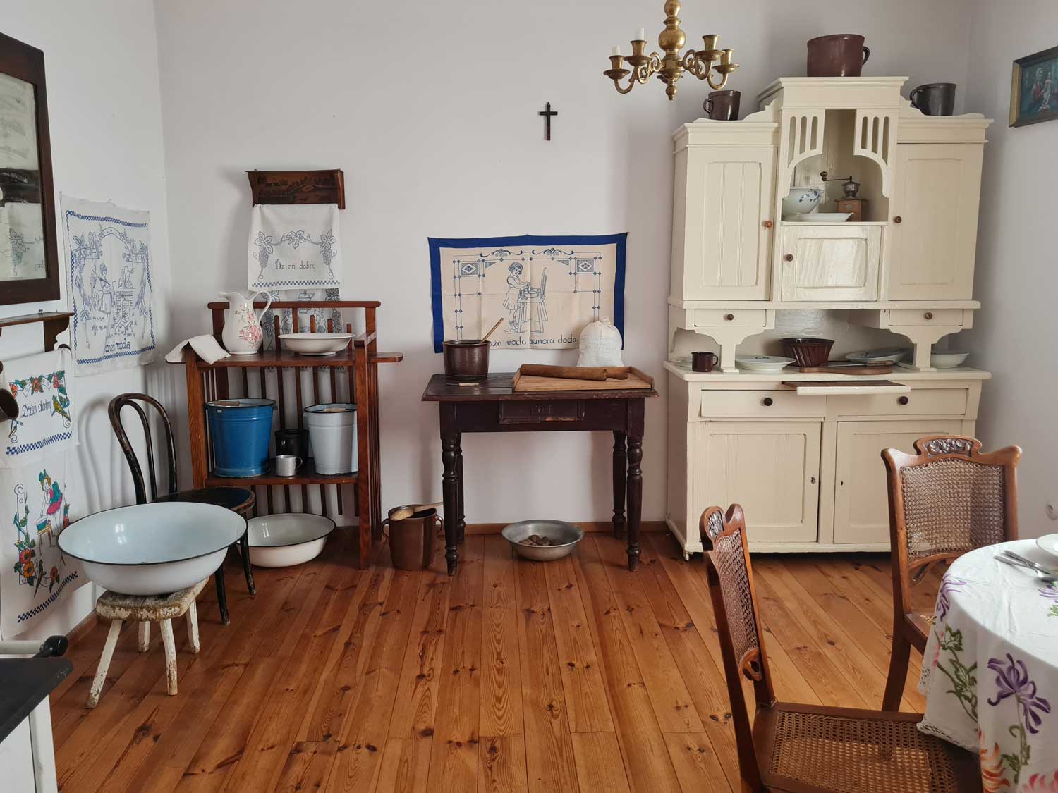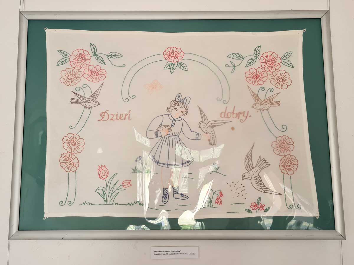 Gdzie kompot z porzeczek i domowe ciasto ... wystawa makatek kuchennych w Skansenie w Maurzycach. Rok 2024.