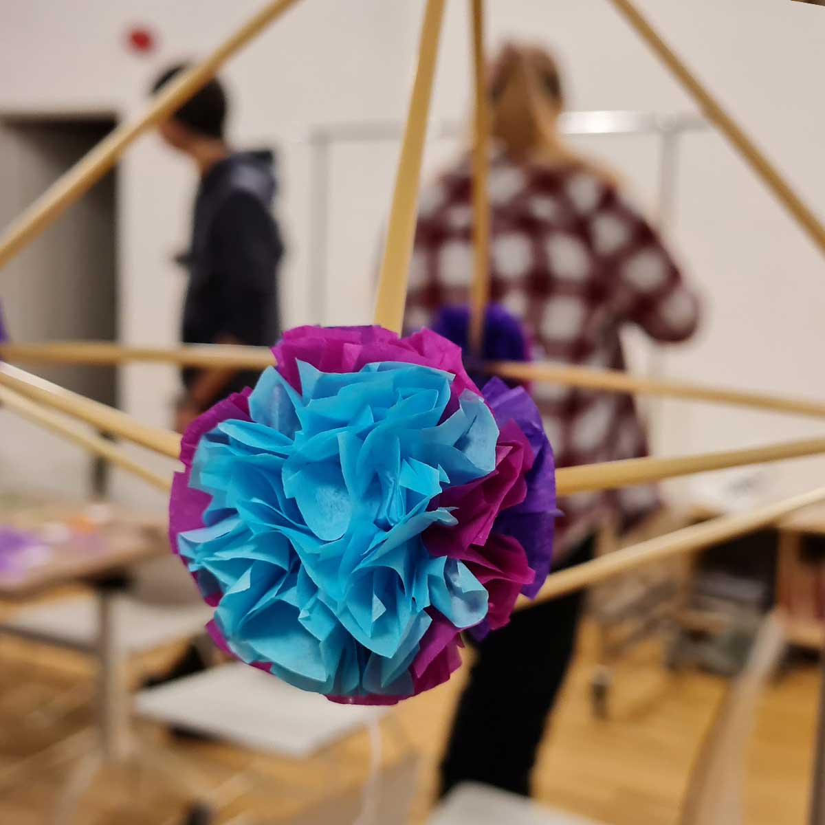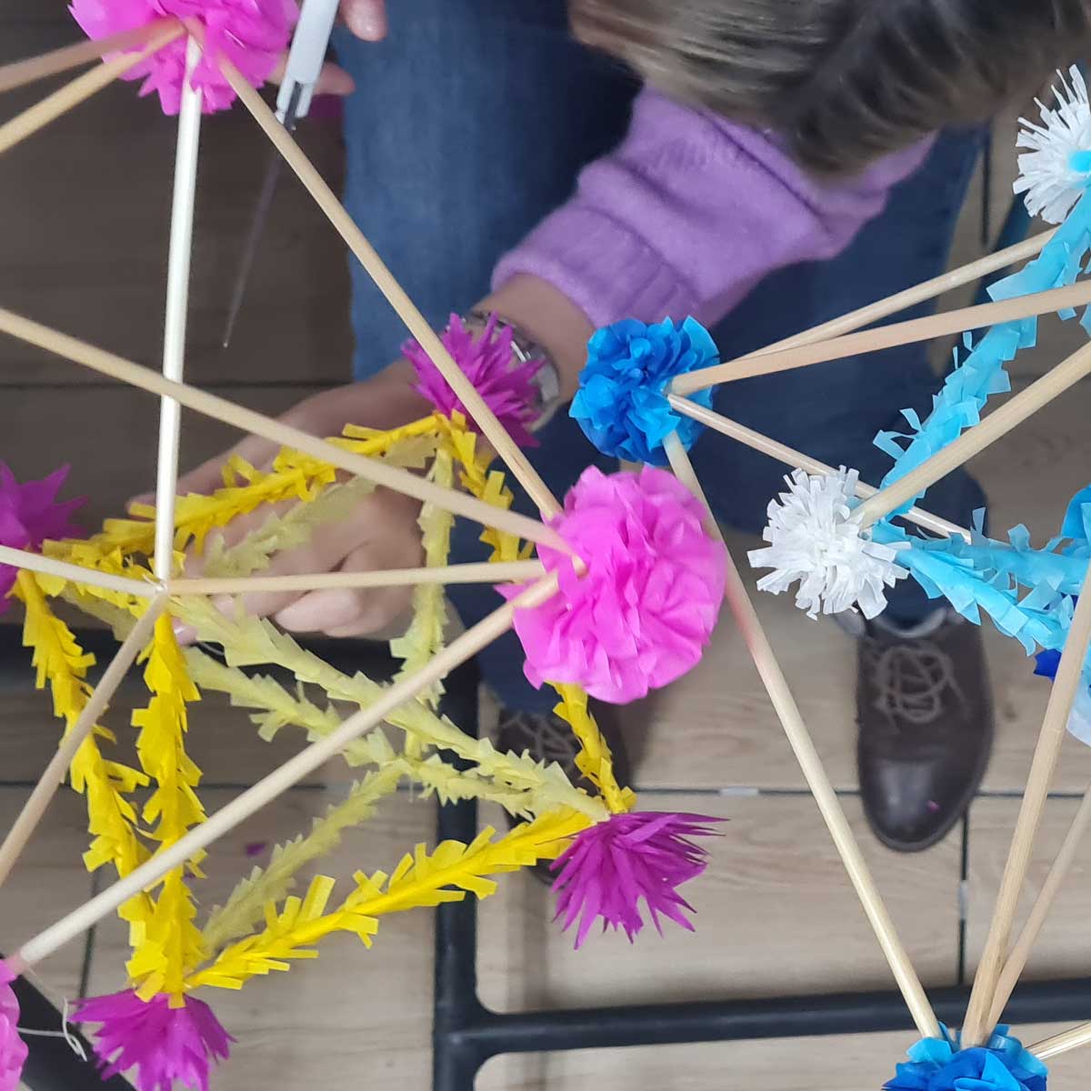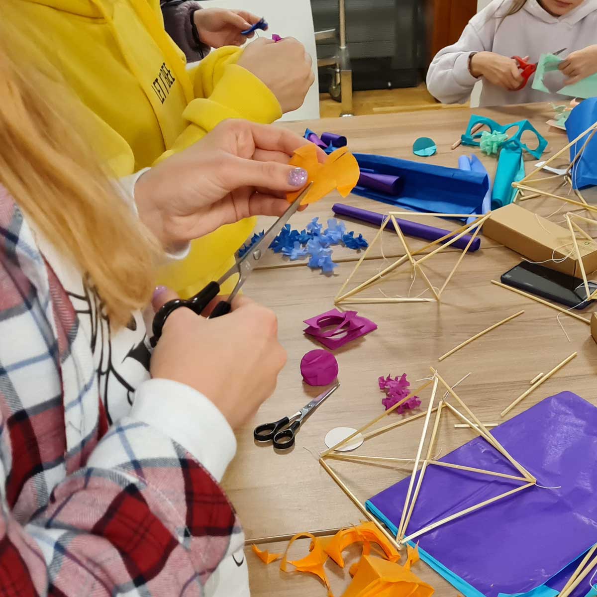 W czasie warsztatów wykonywania pająków ludowych uczestniczki i uczestnicy wykonają prostą formę pająka kryształowego, który każdy ozdobi wg. uznania - w swojej ulubionej kolorystyce - kolorowymi kwiatami [kalinka, stokrotka, chryzantem]. Zdobyta wiedza i doświadczenie pozwolą na realizację większych form pająków ludowych wymagających więcej czasu.